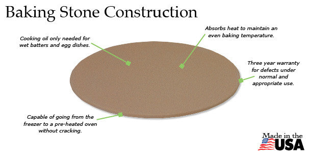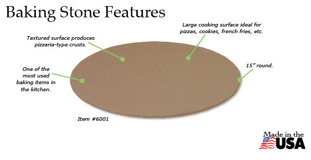 The Rada 15" Baking Stone is perfect for homemade, deli or frozen pizza and other foods like frozen french fries, cookies, biscuits, rolls, specialty breads and pretzels. Rada Stoneware absorbs heat to maintain an even baking temperature so you can experience superior results, the textured surface produces pizzeria-type crusts, perfectly baked cookies and light biscuits. Unlike most other brands of stoneware, our stoneware is dishwasher safe! This is possible because our proprietary clay mixture and manufacturing process minimizes moisture absorption.