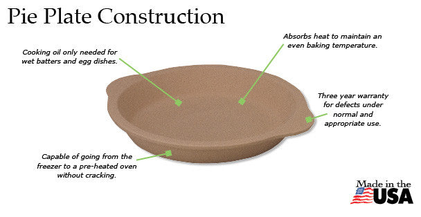 The Rada Stoneware 9" Pie Plate will make your crusts flaky and golden brown - no more soggy pie crusts! Rada Stoneware absorbs heat to maintain an even baking temperature so you can experience superior results. The textured surface produces pizzeria-type crusts. Prepare recipes ahead of time because Rada Stoneware can go directly from the freezer to a pre-heated oven without cracking. Unlike most other brand of stoneware, our stoneware is dishwasher safe!